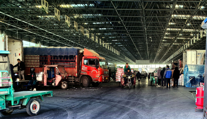 早晨的寿光农产品物流园,蔬菜经销商正在忙碌。新华社记者叶婧 摄